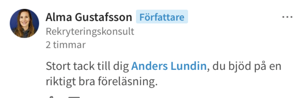Succé Anders!! Lotta från Arbetsförmedlingen.